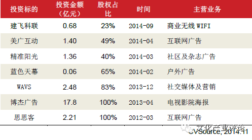 公司与2012年上市后,借助资本市场融资的优势,频繁并购进入广告领域,并购项目出现暴发性增长,而其准确的外延式扩张成为其内生增长最强劲驱动力,进一步提升公司增长空间,成为并购增长的典型案例。