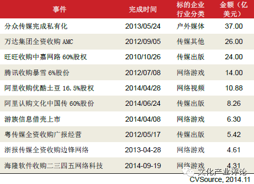 5、文化传媒并购持续加速大传媒时代到来