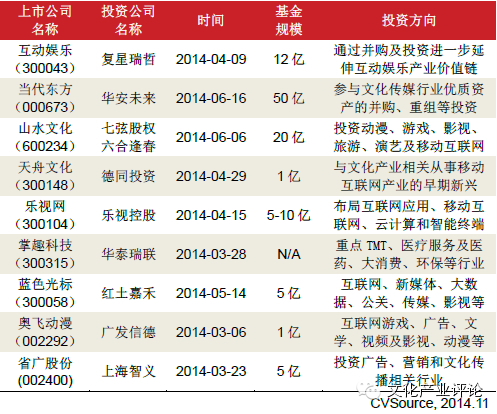 表1 :文化传媒上市公司合作成立并购基金