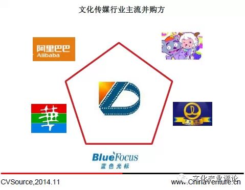 阿里巴巴在收购文化中国后在香港注册阿里影视公司,其可以借助优酷土豆的网络优势,华数传媒的TV覆盖,21世纪的影响、微博营销以及KABAM公司的影视后期开发等优势,迅速形成产业链条,完成由全新产业领域拓展