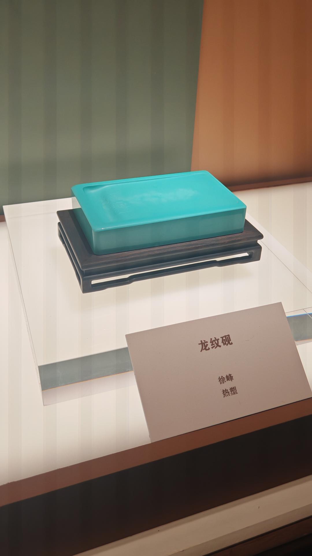 蓝绿晶莹、温润欲滴的龙纹砚是用松石绿琉璃材质雕刻磨制而成的砚台,是对传统砚台材质的突破。山东省工艺美术大师徐峰说,通过对琉璃的特性以及琉璃配方和烧制过程的全面研究和了解后,经过多次研试,才最终掌握了这种琉璃品质砚台的制配方法。