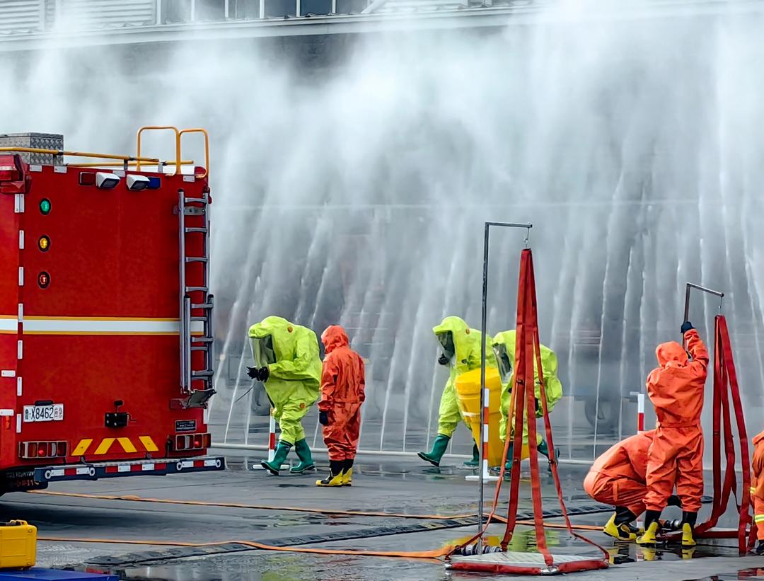 随着演练指令下达,来自市区两级邮政管理、公安、消防、卫健等部门的200余名人员迅速进入“战斗”状态。三大高风险场景依次“登场”,从涉恐危爆物品发现时的紧急封控,到危险化学品泄漏后的科学处置,再到大型快递分拨中心火灾的快速扑救,每个环节都真实还原了突发事件发生时的紧张与复杂。各部门紧密配合,按照既定预案,有条不紊地开展险情报告、人员疏散、应急救援等工作,将多部门协同作战的高效性展现得淋漓尽致。