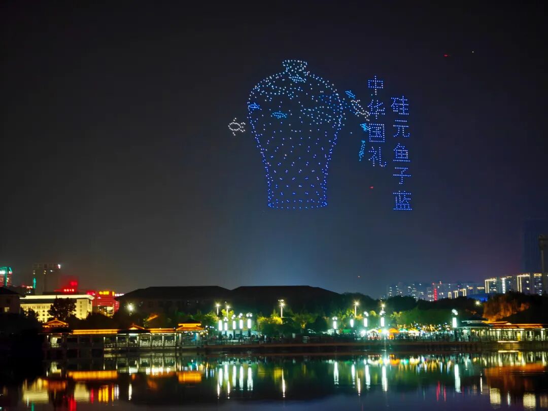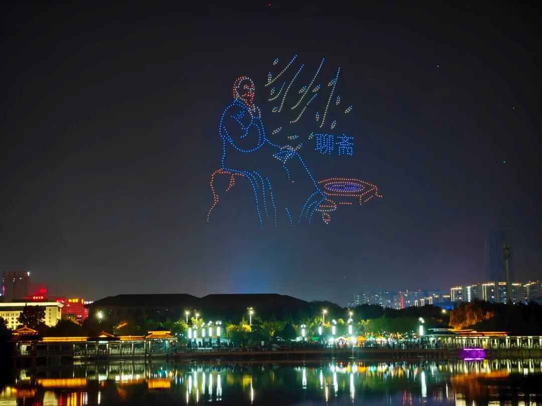在淄博的夜空中勾勒出流动的诗行。