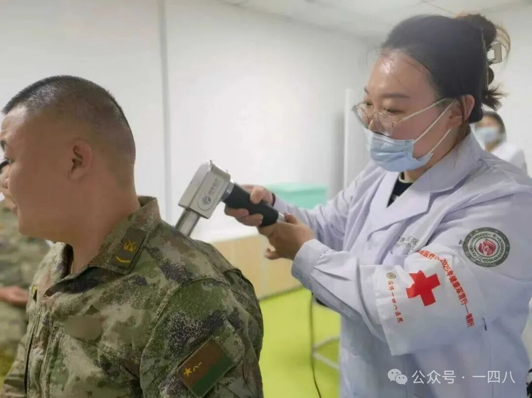 此次巡诊亮点突出,多科室针对性服务成效显著。康复医学科成为官兵“肌肉救星”,针对部队官兵长期固定姿势、加班久坐、高强度训练及寒冷潮湿环境导致的肌肉劳损、筋膜粘连等问题,运用深层肌肉刺激仪(DMS)直达病灶,有效松解粘连、促进血液循环,帮助肌肉放松并激活弱势肌群,治疗后官兵们纷纷反馈“效果立竿见影”。眼科为一名军官现场剔除困扰多年的多个睑板腺囊肿,解决其长久烦恼;口腔科推出成人涂氟防龋服务,5-10分钟无痛完成,化解官兵“没时间就医”难题。此外,中医科通过针刺疗法缓解战士脘腹胀痛,超声科为有焦虑情绪的早期妊娠官兵解惑,各科室协同发力,为官兵健康保驾护航。