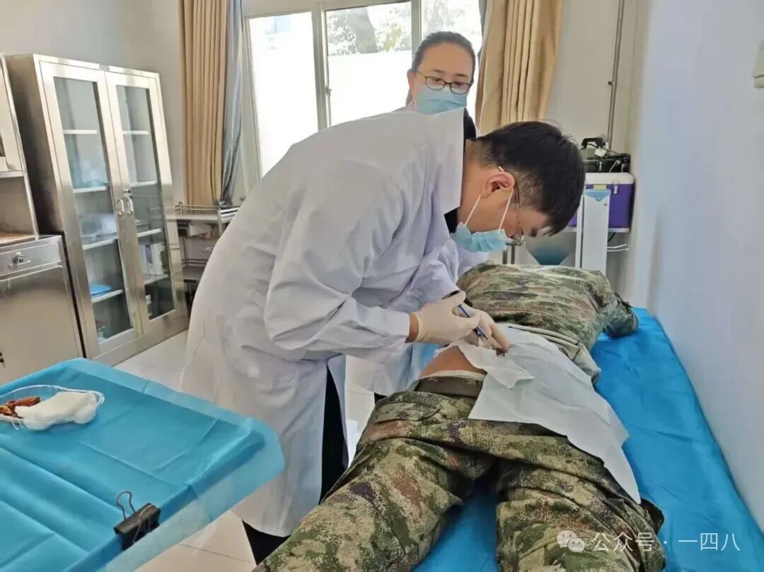 除了常规诊疗,医疗队员还及时处理紧急情况:专家为一名走路受限两周的战士成功实施脓肿切开引流术,术后效果立竿见影;中医科则针对官兵们常见的畏寒、胃肠紊乱等症状,逐一制定内服外治的个性化方案。当发现一名咳嗽发热的官兵确诊为重型肺炎时,医护人员立刻联系部队卫生队,协调转运送医,确保官兵得到及时救治。部队政委紧紧握着医疗队长的手,满是感慨:“你们带来的不只是精湛的医术,更带着后方人民对子弟兵的牵挂!”