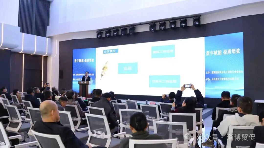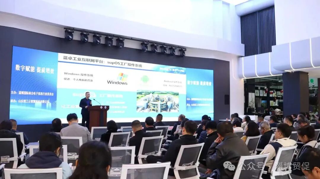 第四次工业革命呼啸而来,数字化浪潮汹涌澎湃,为了助力企业推动数字化转型,找到最佳的应对措施,走一条正确的数字化转型之路,10月24日上午,由淄博国际商会电子信息行业委员会主办,山东理工智慧科技有限公司承办的企业数字化突围之道研讨会在国际会客厅举办,市贸促相关领导出席会议并致辞,山东理工云智慧科技有限公司董事长薛冰致辞,蓝卓数字科技副总裁陈挺博士,山东赛宝电子信息工程有限公司淄博分公司执行董事康元生发表演讲,来自全市化工、机械、电器等行业近百人参会。