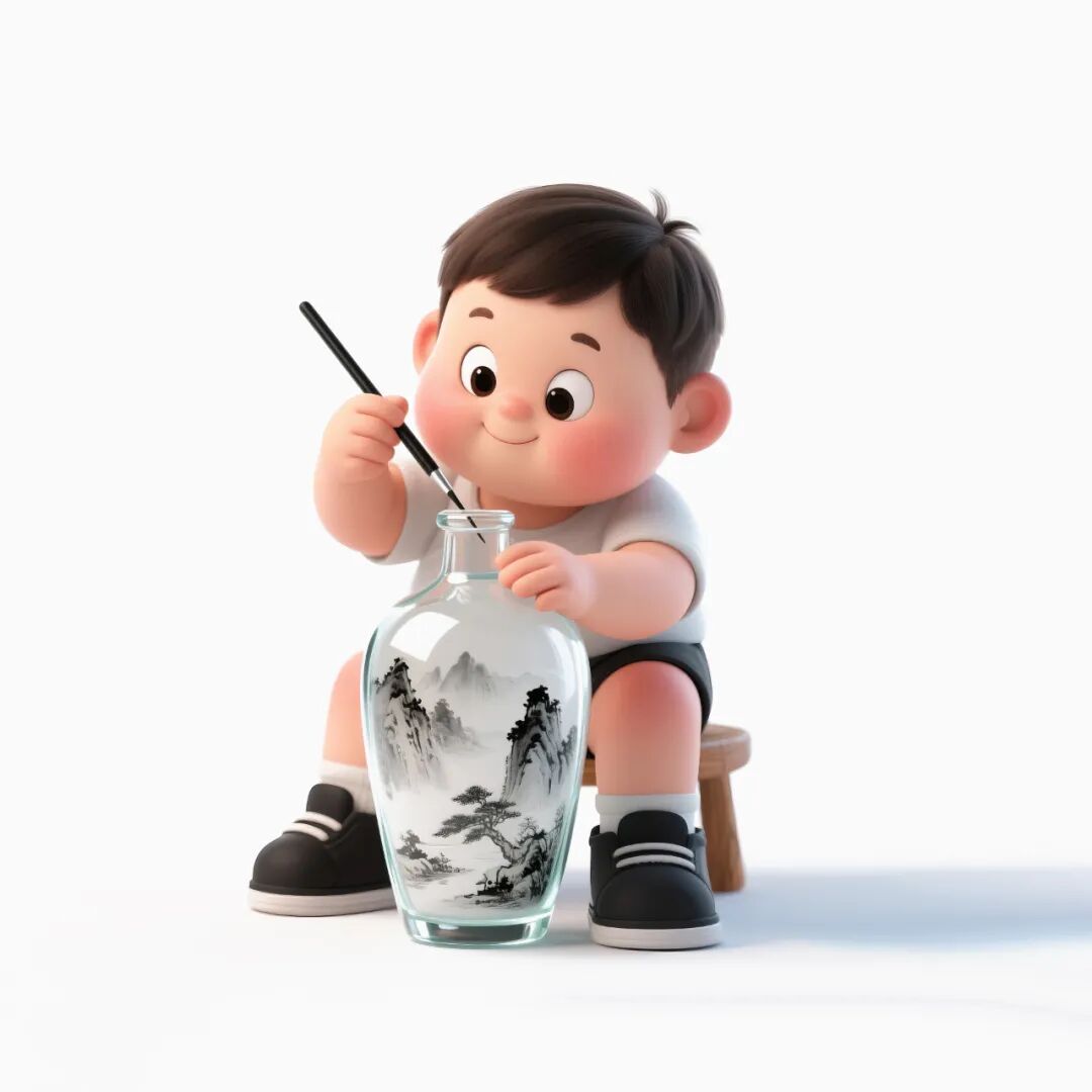 作品名称:《古人诗意系列》炫彩琉璃内画