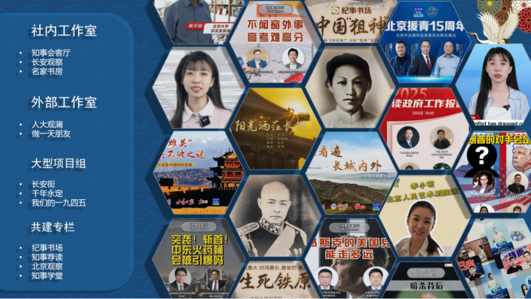 近年来,长安街知事策划了“京心筑梦”“我们的一九四五”“长安街”“千年永定”等一系列大型主题报道。在上述主题报道中,编辑部尝试沿用工作室模式,联动多部门协同,组建策划、生产、传播、运营的全链条闭环团队,确保深度报道的专业性与系统性。