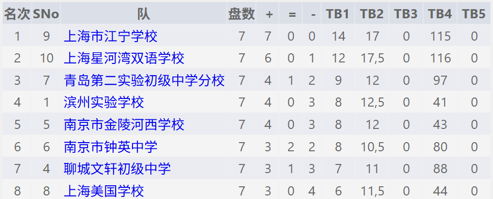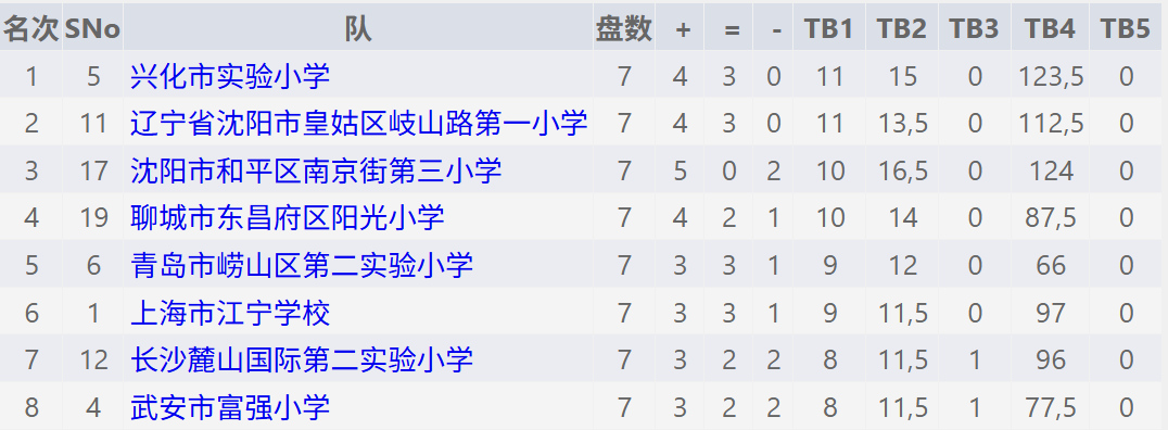 表丨全国总决赛小学B组(小学三、四年级在校学生)前八名成绩表
