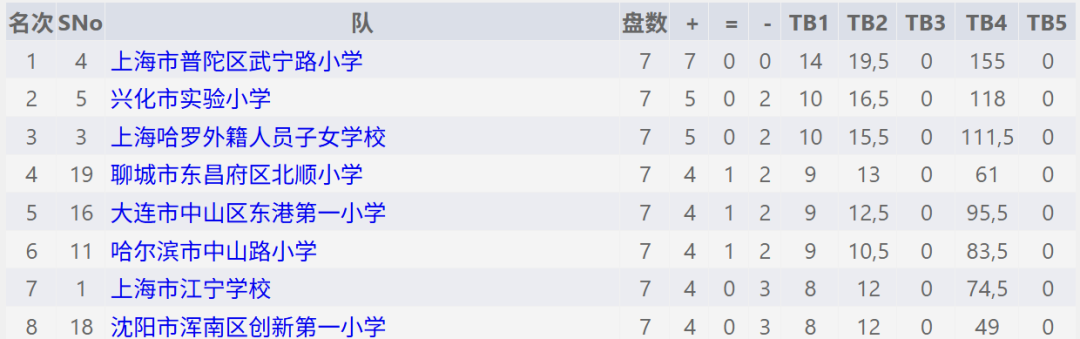 七轮战罢,初中组、小学A组、小学B组、小学C组四个组别的冠军得主是:上海市江宁学校、兴化市实验小学、上海市普陀区武宁路小学、金陵河西学校小学部。