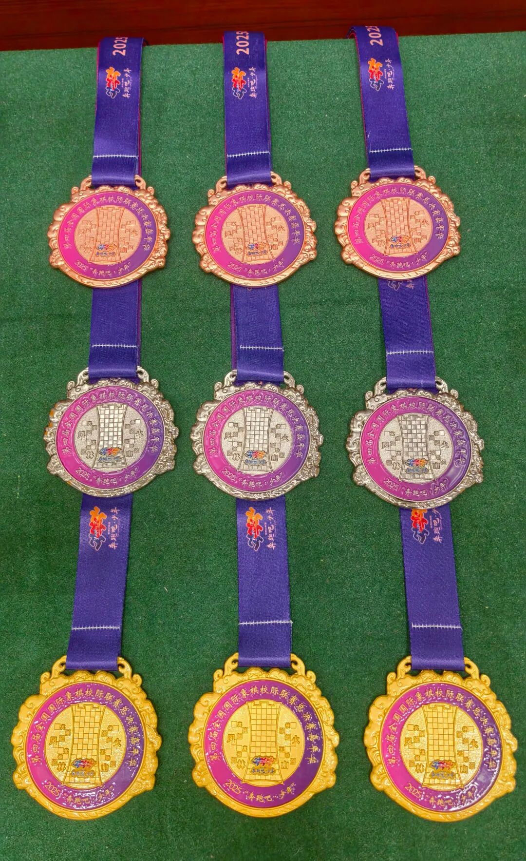 图丨2025年第四届“奔跑吧·少年”全国国际象棋校际联赛总决赛冠亚季军奖杯及奖牌