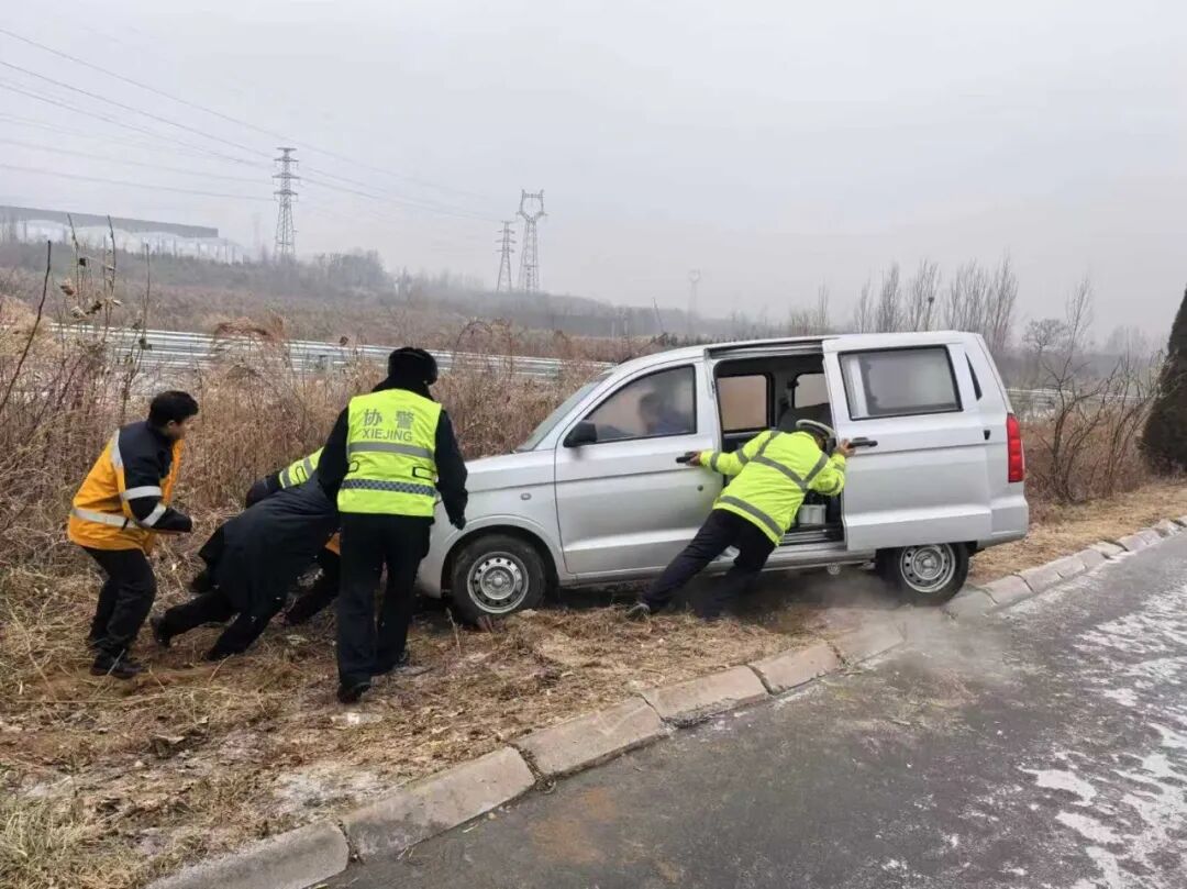 严管严控联勤联动,筑牢安全屏障。实行“定点值守+动态巡逻”模式,重点加强高速公路、国省道等风险区域管控。深化“一路多方”协作机制,与高速、路政、养护等相关部门出动各类清扫车辆311台,累计播撒融雪剂788吨;备好应急拖车,快速处置交通事故和车辆抛锚事件。1月18日,周村交警快速处置正阳路铁路桥路段单方事故,清理路障并联动修复护栏;博山交警在省道317岱庄村路段,合力将因路面湿滑冲入排水沟的面包车推出,暖心守护群众出行。