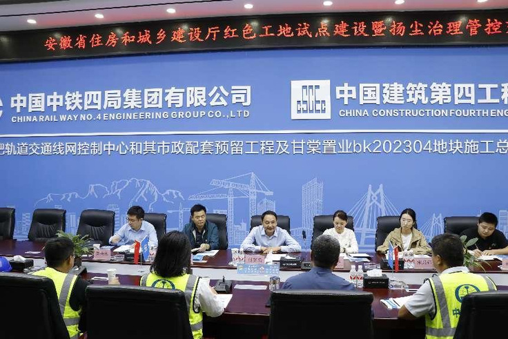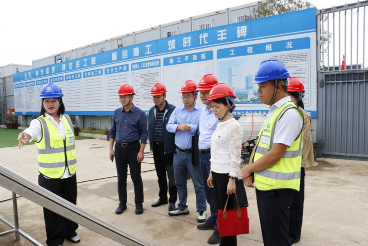 2024年10月17日下午,安徽省住房和城乡建设厅工程质量安全监管处二级调研员张晓燕、三级调研员付芝兵、四级调研员蔡勇,安徽建筑大学土木学院安全工程系教师秦荣水等一行6人,赴中铁四局合肥轨道交通线网控制中心及甘棠置业项目,开展以“红色工地赋能建筑施工高质量发展”为主题的党日活动。这次活动旨在深入落实党建与项目建设相融合的理念,通过实地调研和经验交流,促进红色工地建设的进一步完善,赋能建筑施工高质量发展,同时推动扬尘治理工作的高效落实。
