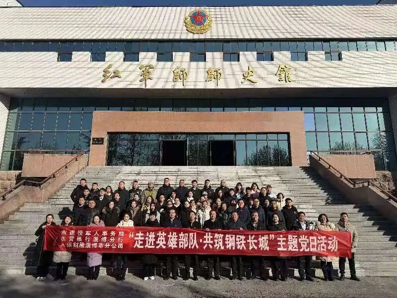 1月20日上午,淄博市退役军人事务局联合党组织联建共建单位东营银行淄博分行、人保财险淄博市分公司走进驻淄某部红军师师史馆,开展“走进英雄部队·共筑钢铁长城”主题党日活动。