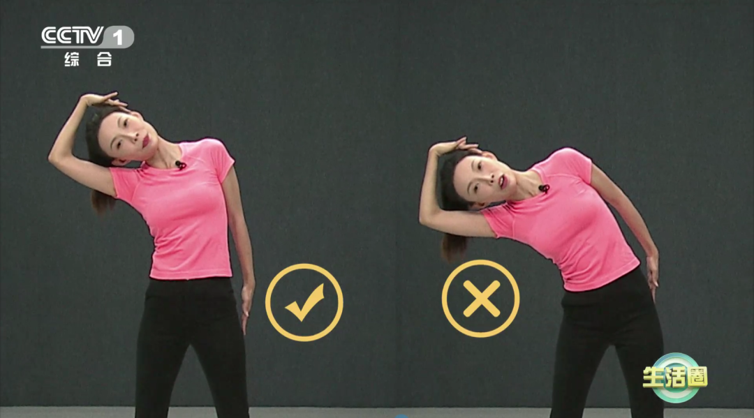 做这个动作时,在受力范围内向后夹角越大,拉伸效果越好。手臂回折后,头部向旁顺势转动即可,这个拉伸角度比较适合中老年人。