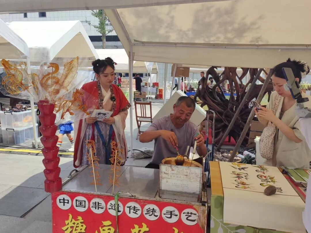 非遗是本次市集的核心亮点。市民游客既可购买非遗产品,也能沉浸式体验非遗技艺,感受传统年味的文化底蕴。