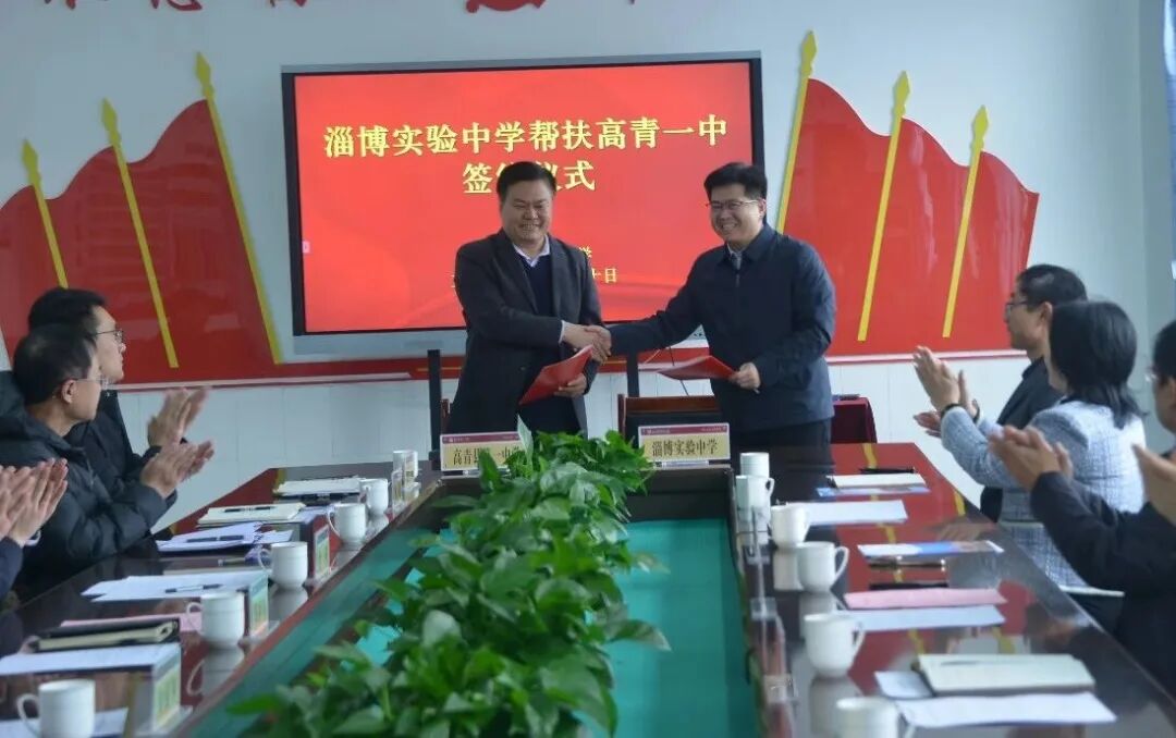 仪式上,高青一中主要负责同志介绍了学校的办学理念、师资队伍建设、特色办学成果及发展规划,淄博实验中学主要负责同志介绍了帮扶目标与措施,双方签署了合作协议。淄博实验中学和高青一中“结对帮扶”,既是市教育局支持高青突破、助力高青一中发展的重要举措,更是落实“突破高青”发展战略的具体行动,为高青一中突破瓶颈、提质增效提供了宝贵契机。