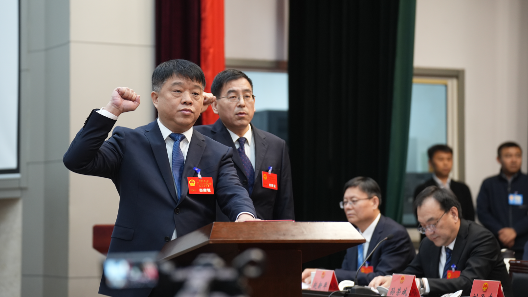 会议表决通过关于接受有关同志辞呈的决定,表决通过区十九届人大五次会议总监票人、监票人名单,随后会议以无记名投票的方式,选举孙荣斌为区人大常委会主任;选举李绪涛为区人大常委会副主任;选举刘青为博山区人民政府区长。当选人员进行了宪法宣誓。