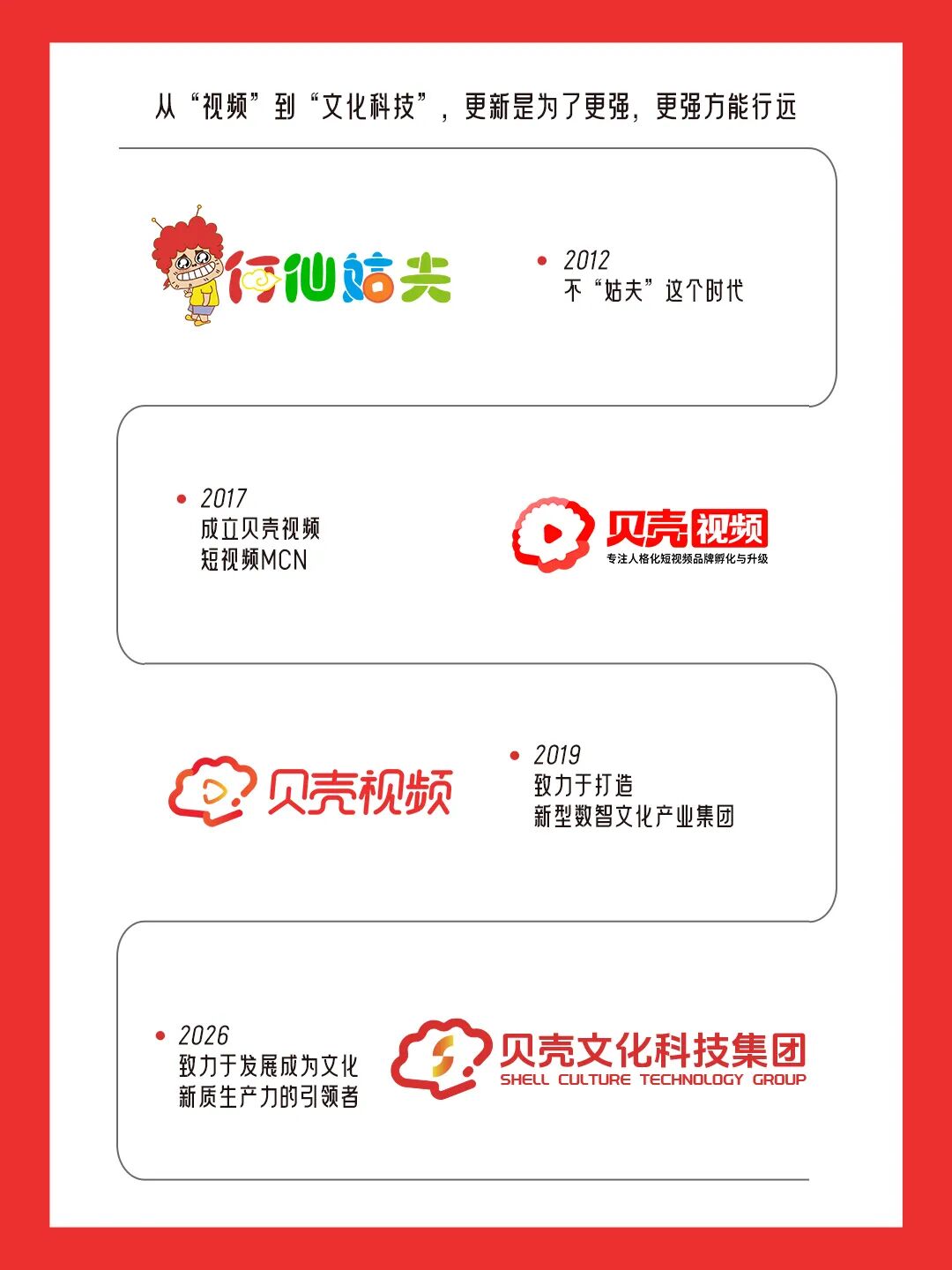 新年伊始,万象更新。伴随着开工的号角,我们迎来品牌升级的重要时刻——即日起,“贝壳视频集团”正式升级为“贝壳文化科技集团”。这不仅是名称的变更,更是我们核心战略的清晰昭示:在数字文明蓬勃发展的今天,文化与科技的深度融合正重塑产业形态,催生无限可能。为顺应这一时代趋势,深化自身在内容科技与产业赋能领域的长期积累,我们全面迈入“文化+科技”双轮驱动,积极参与构建面向未来的数字文化新业态,以全新的姿态开启新征程。