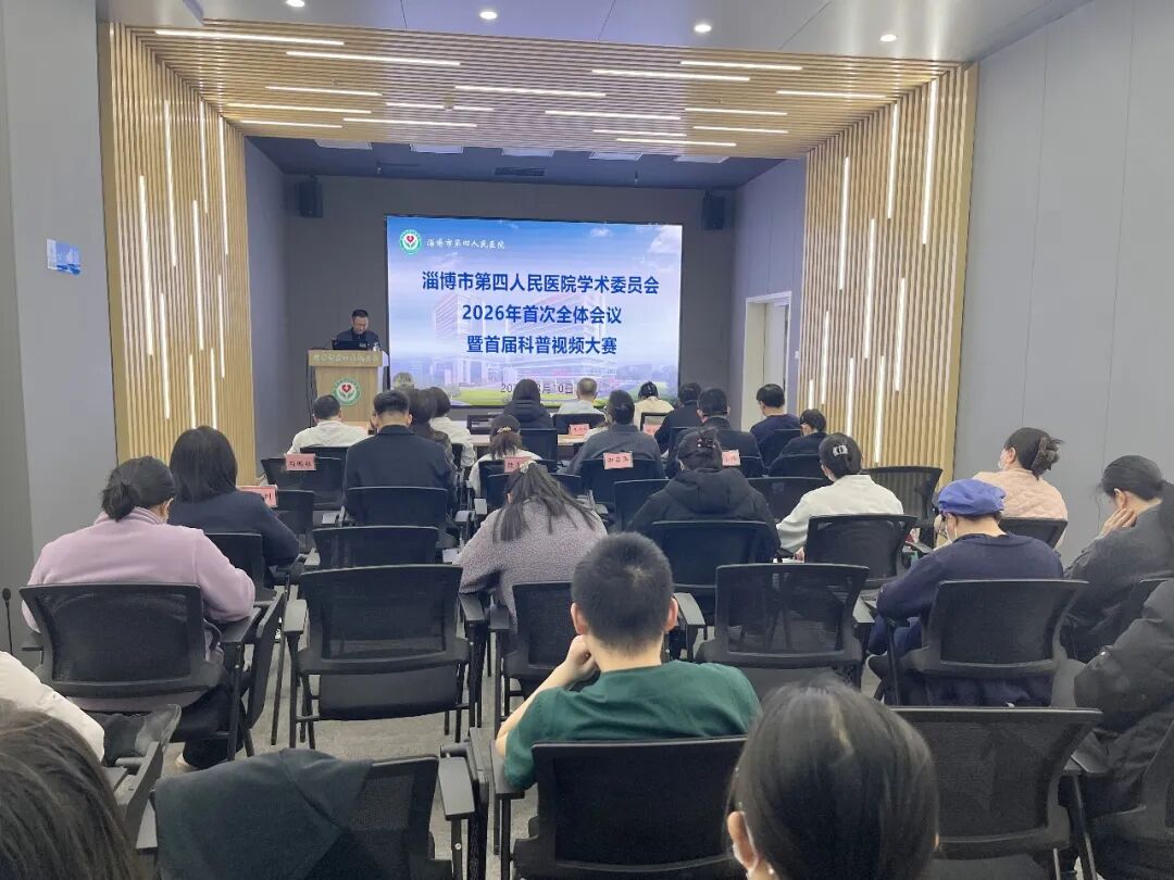 3月10日下午,淄博市第四人民医院召开学术委员会2026年首次全体会议暨首届健康科普视频大赛展评。本次会议完成学术委员会的人员调整,明确教研管理的骨干力量,并通过健康科普视频大赛激发医务人员的科普创作热情,推动健康知识传播。党委副书记张宏伟、纪委书记孟明、副院长李庆、总会计师商慧芹出席会议,学术委员会全体委员及教研秘书参加会议。