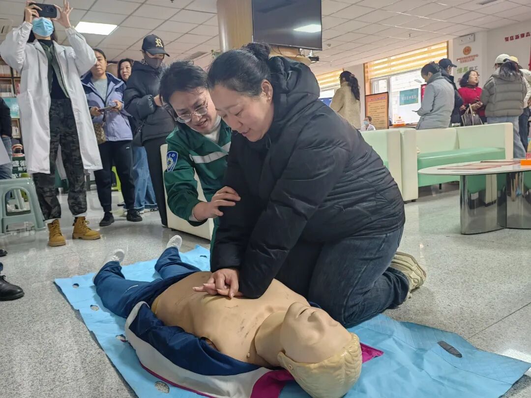 为了让急救知识深入人心,急诊科将“课堂”搬到了义诊现场,利用模拟人进行心肺复苏术的规范演示,这一环节吸引了众多孵化中心的员工和创业者驻足学习。大家纷纷主动上前,在医护人员的指导下进行实操演练,现场气氛热烈。大家表示,这样的技能非常实用,关键时刻能救人一命,是最宝贵的“职场必修课”。