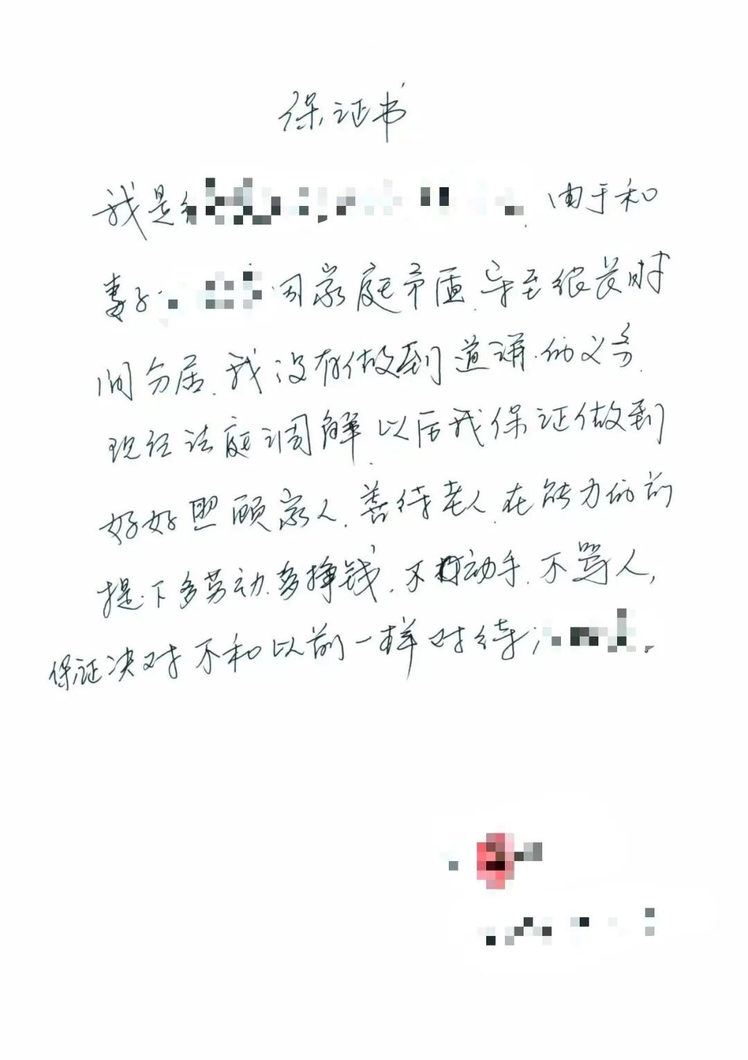 面对男方初期的蛮横抵触,张法官一方面亮明家暴行为的法律底线,宣讲相关法律法规,明确违法后果;另一方面,耐心倾听其内心诉求,唤醒他对几十年夫妻情分的珍视。在韩阿姨住院治疗的关键节点,张法官抓住契机,组织双方进行暖心沟通,最终让男方醒悟,当场写下保证书,这场濒临破碎的婚姻,在司法温情的滋养下重归和睦。