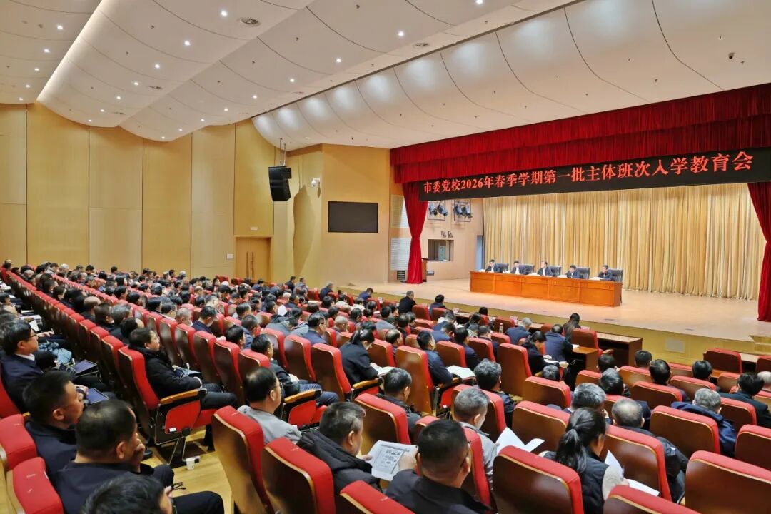 3月16日上午,市委党校举办2026年春季学期第一批主体班次入学教育会。分管日常工作的副校长、校委会主任张立国参加会议并讲话,副校长、校委委员周其文主持,校委成员和有关处室负责人,市纪委监委、市委组织部选派的监督员、组织员,2026年习近平新时代中国特色社会主义思想专题研讨班、“走在前、挑大梁”交流互鉴融合培训暨第一期县级领导干部进修班、第一期科级干部进修班全体学员参加。