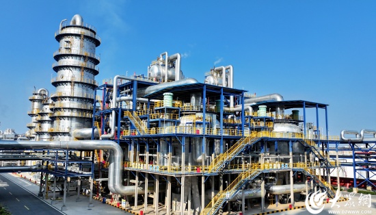 走进齐翔腾达工业园区,机器高速运转,职工往来穿梭、运输车辆排起长龙……映入眼帘的是一幅幅热火朝天的生产画卷。管道纵横交错间,这座产能超300万吨/年的化工基地正高负荷稳定运转。