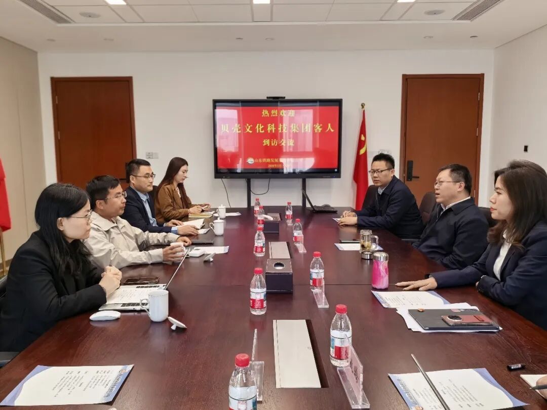 3月23日,贝壳文化科技集团董事长刘飞带队到访山东铁路发展基金有限公司,与铁路基金公司党委书记、董事长、总经理,山东铁投集团上海分公司总经理蔡承志举行座谈。