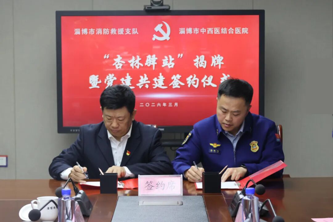 春风送暖,杏林飘香。为进一步深化医疗救护与消防救援工作的深度融合,筑牢应急救援健康屏障,3月26日,淄博市中西医结合医院(淄博市优抚医院)联合淄博市消防救援支队共同举办“杏林驿站”揭牌暨党建共建签约仪式,并同步开展公益义诊活动,旨在将优质、便捷的中西医医疗服务直接送至广大消防救援人员身边。医院与支队相关领导、党员代表及医护人员、消防救援人员共同出席了此次活动。
