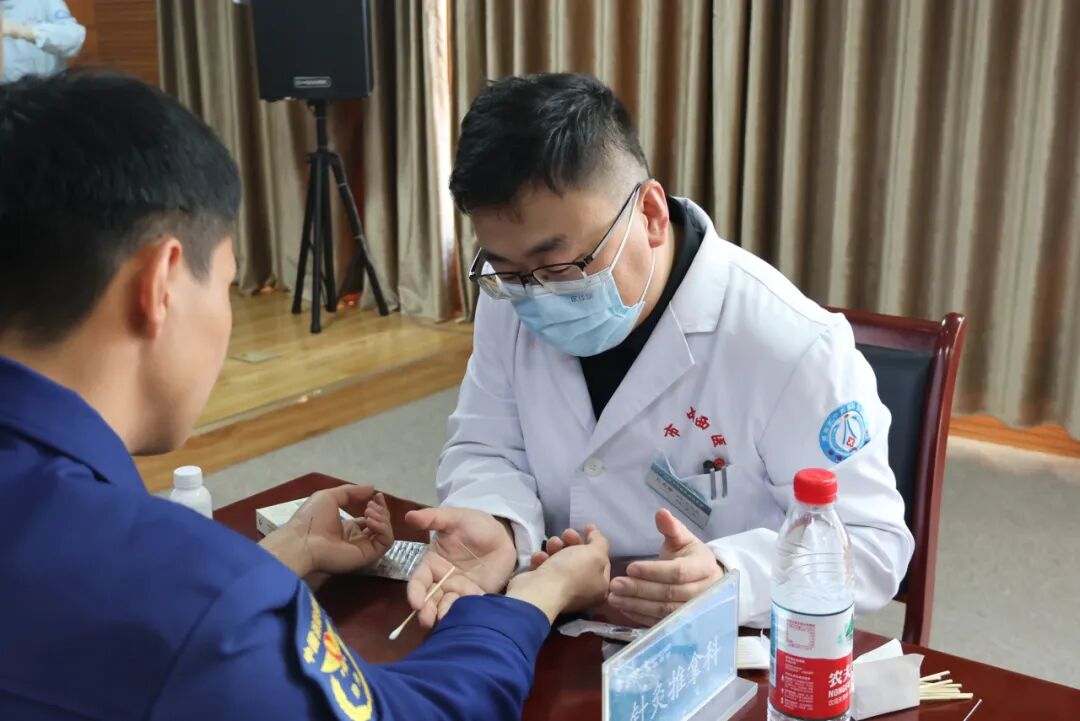 仪式结束后,多学科义诊活动正式启动。医院选派的内科、疼痛、中医、针灸推拿、康复等多专业专家团队,为消防救援人员提供一对一精准诊疗。结合队伍职业特点,专家们重点围绕颈肩腰腿痛防治、训练伤预防、心脑血管健康养护及心理压力疏导等多发健康问题,开展了细致脉诊与体质辨识,普及科学养生知识,并量身定制了康复保健方案。