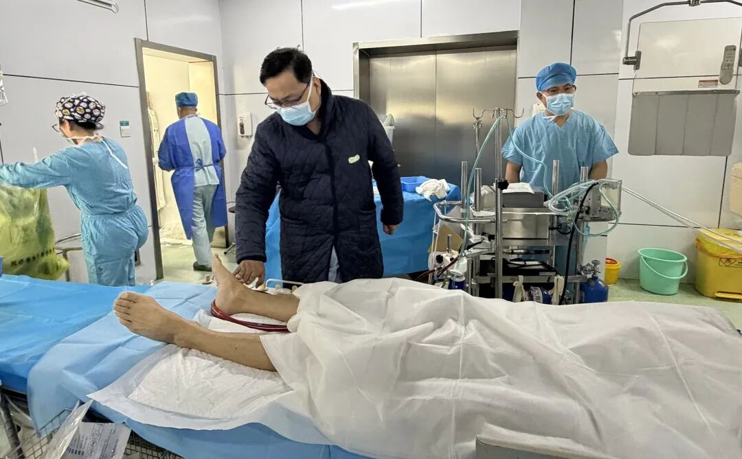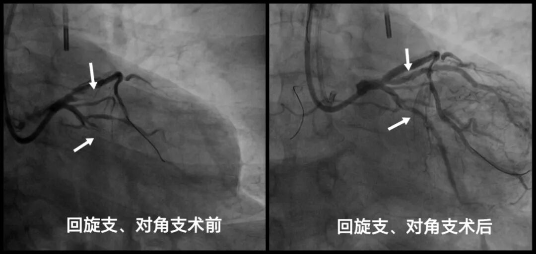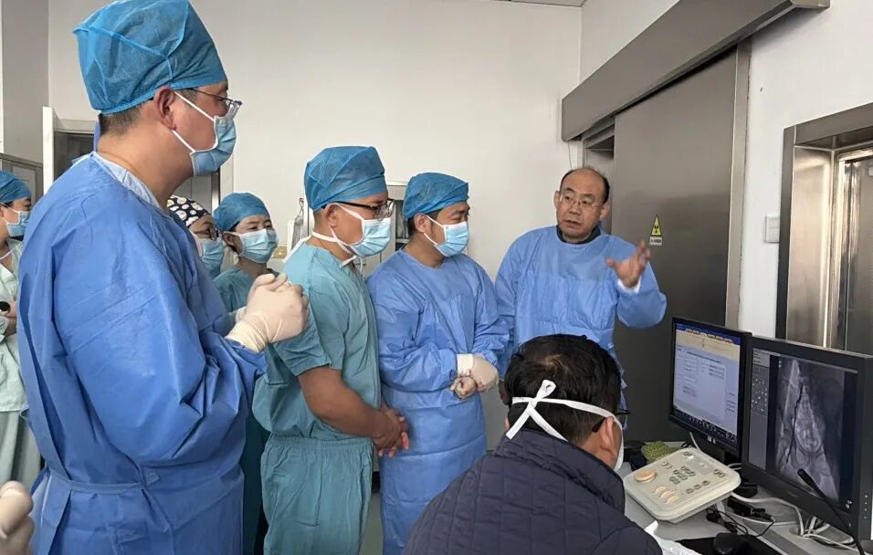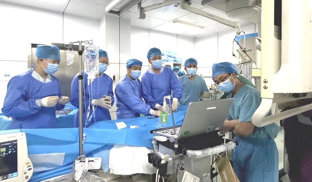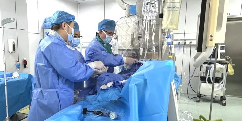 这场与死神赛跑的手术正式启动。介入导管室护理团队宋静茹、王晴、赵立静、夏欣萍及技师团队王会杰、李鑫提前备台,协调好ECMO、IABP、呼吸机的摆放位置,严阵以待、术中密切配合,东院重症医学科主任宋玮玮带领ECMO小组李昌军、于勇快速熟练为患者植入ECMO+IABP,在ECMO与IABP构筑的“双擎”护航下,向高危复杂病变发起挑战。患者三支血管均为慢性完全闭塞性病变(CTO),手术风险及难度大,在尹波带领下,董国峰、代传芳、董硕主治医师紧密配合,凭借精湛技术与丰富经验,巧妙操控导丝穿越病变,用时1.5小时成功开通4根闭塞血管并精准植入支架,顺利完成冠状动脉的完全血运重建。