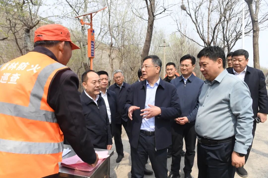 马晓磊还来到薛家峪防火检查站,认真察看进山登记、火源管控等情况,并看望慰问一线工作人员。他强调,要强化源头防控,紧盯清明、“五一”等重点时段,深入排查整治风险隐患,配齐配足防灭火物资装备,加强值班值守、加密巡护巡查,教育引导群众安全用火、全民防火,切实做到把住路、守住山、看住人、盯住坟、管住火。