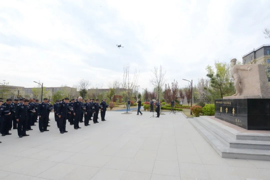 英烈从未远去,精神传承后人。在梁学章英烈广场,淄博人民警察训练基地全体民辅警集体脱帽肃立,向烈士雕像默哀致敬,依次瞻仰烈士雕像并敬献鲜花,深刻缅怀以梁学章同志为代表的淄博公安英烈的英雄事迹和丰功伟绩。