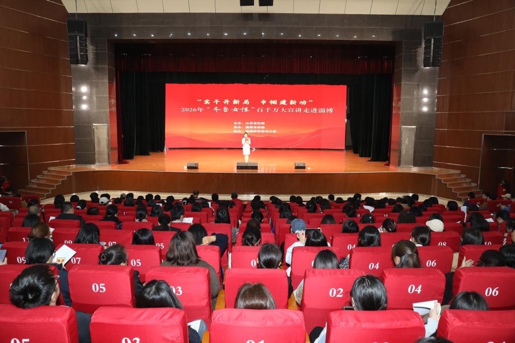 4月10日下午,“实干开新局 巾帼建新功”2026年“齐鲁女性”百千万大宣讲(淄博高校分会场)活动在淄博职业技术大学北区音乐厅举行。学校党委委员、副校长马召芹,淄博市妇联党组书记、主席成文,淄博市妇联党组成员、副主席张国俊出席活动。学校教职工代表、学生代表500余人参加。
